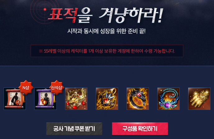 별개로 55레벨 이상 캐릭터가 있을 때 위의 보상들을 또 받을 수 있습니다.