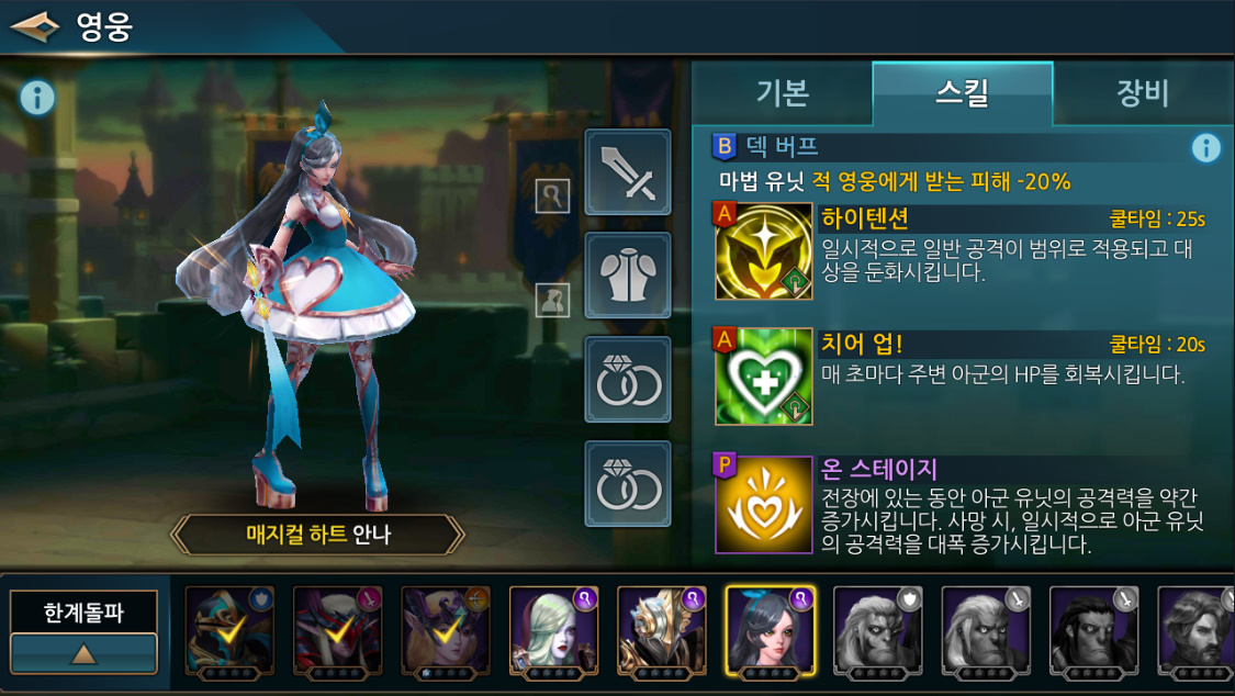 영웅을 통해서 사용할 수 있습니다. 각각 영웅들은 다른 스킬을 가지고 있고요.