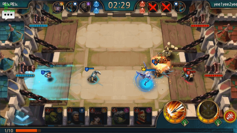 매 판 영웅을 3명까지 사용할 수 있고, 한 영웅이 죽어야 다른 영웅을 소환할 수 있죠.