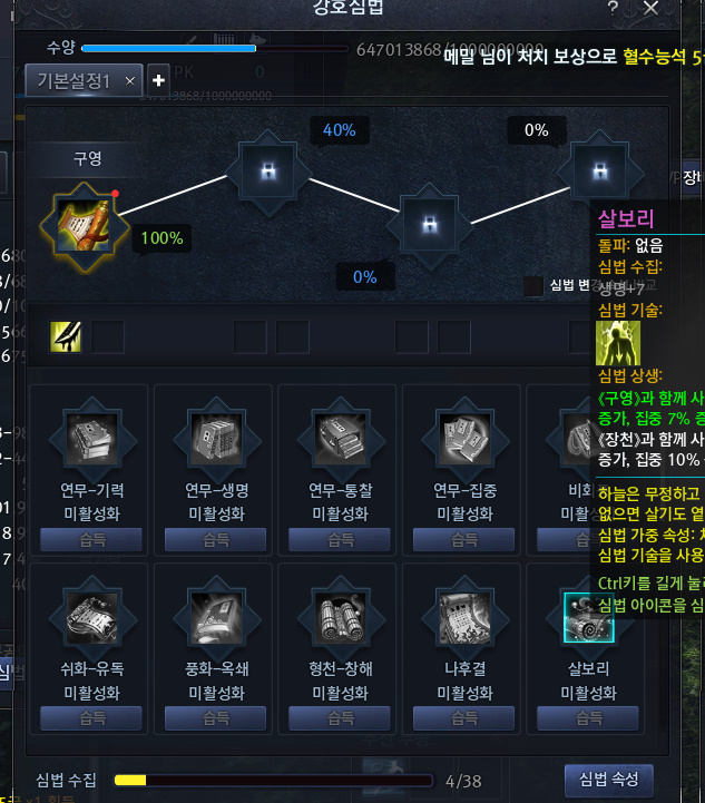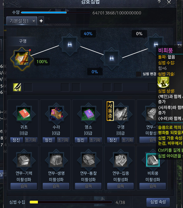 심법의 효율을 최고로 끌어올리기 위해서는 장비 셋팅도 중요한데