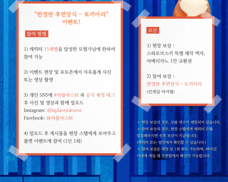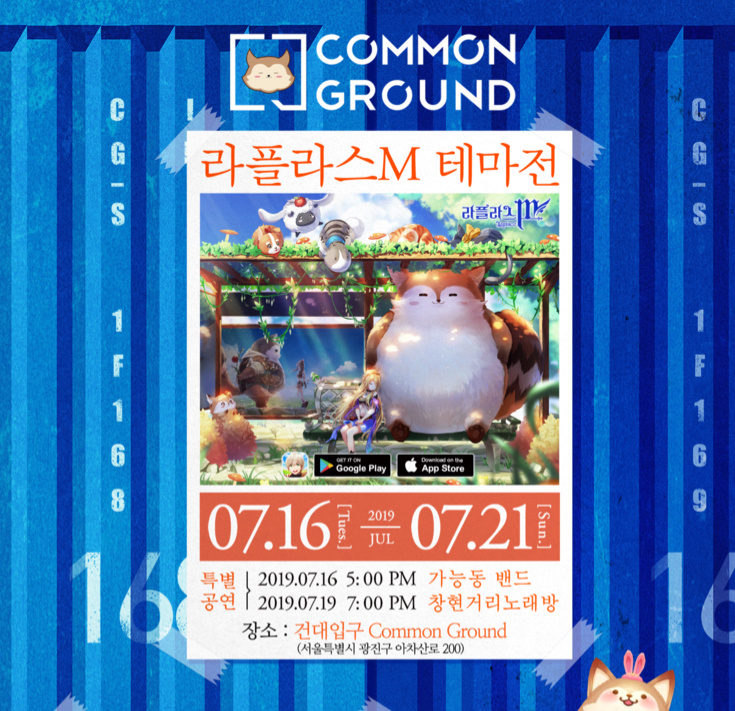 Adrian 라플라스엠 오픈 기념 건대입구 커먼그라운드에서 행사합니다ㅋㅋㅋ 작성일시 : 2019. 07. 17 (17:45) 조회 : 1,792 / 댓글 : 1 건대입구 역에 있는 커먼그라운드에서 라플라스엠 참여행사가 있더라구요ㅋㅋㅋㅋ건대 근처에 볼일이 좀 많은 편인데 마침 잘된듯 싶습니다ㅋㅋㅋ참여보상으로 인게임 템을 준다는데 먼가 귀여운 후면장식일 것 같군요ㅎㅎ여자친구랑 같이 플레이하는 중인데 19일에 퇴근하고 가서 여자친구랑 사진도 찍고 같이 라이트레인같은 카페 앉아서게임하다가 불금을 즐기면 될듯 싶군여ㅎㅎㅎㅎㅎ 3추천 글쓰기스크랩 신고