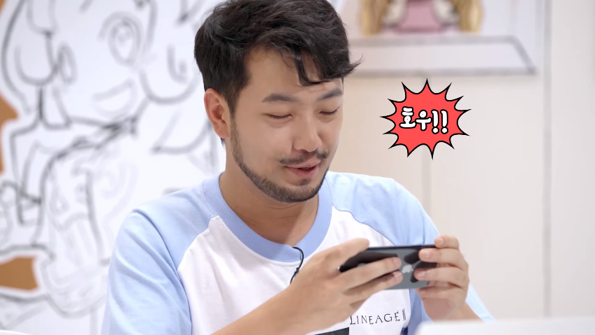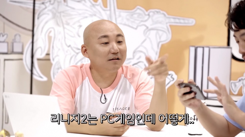 근데 완전 띠용한게 이말년 작가님이 리니지2 게임 화면을 핸드폰으로 보는 장면이 나와요