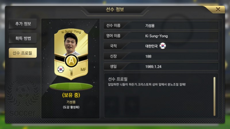 그 선수들의 특징을 잘살려서 프로필과, 스킬들을 만들었더군요 ㅎㅎ