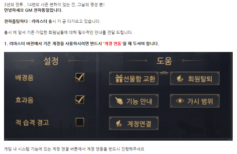 웨저렙 천탐 리마스터 하쉴? 작성일시 : 2019. 08. 29 (22:32) 조회 : 1,950 / 댓글 : 0 조만간 천탐 리마스터 업데이트할건데짱짱한 풀 3D 그래픽으로 바뀌거든요후후... 맛보기 사진 보니깐 퀄리티 미쳐부렀;저도 아직 늅뉴비지만 천탐 리마스터 같이 하실 분 있으면고고 하시죵 ㅎ_ ㅎ 그리고 혹시 모르니까 계정 연동 미리미리 해두라는데만약 천탐 했었다거나 하고 계신 분들은까먹지말고 연동해두세요.. 2추천 글쓰기스크랩 신고