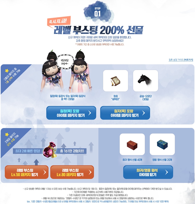 그리고 신규 캐릭터 만들면 레벨 부스팅 200% 선물도 주고