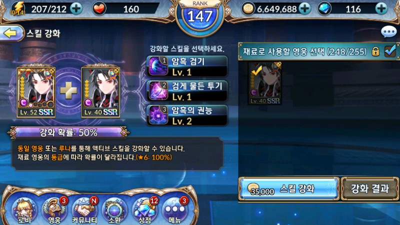 지금 강화확률이 50% 입니다. 그이유가 보통 SSR뽑기를 하면 4성으로 나오게됩니다