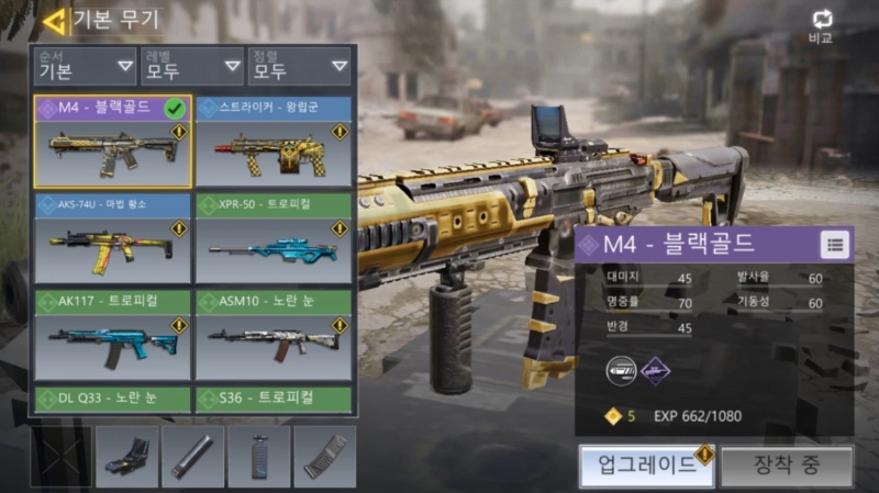 레벨업을 할 때 마다 다양해지는 총기 부착물,
