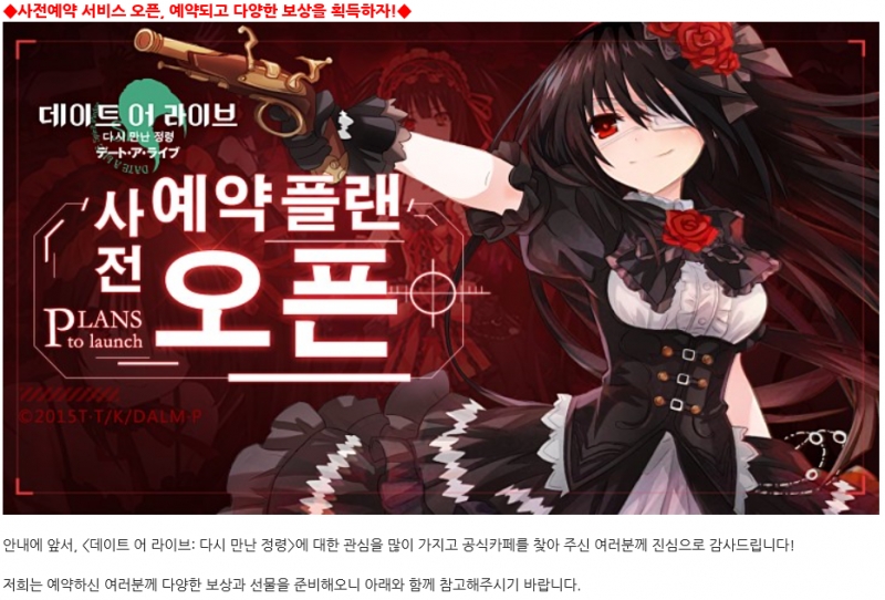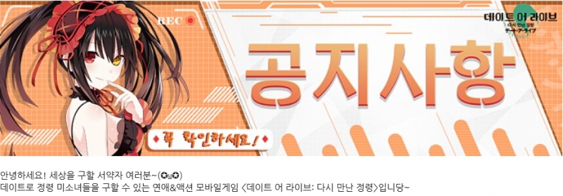 핰 데이트 어 라이브: 다시 만난 정령 PV 작성일시 : 2019. 10. 12 (15:40) 조회 : 2,864 / 댓글 : 1 노래: 데어라 게임 리오 린카네이션 오프닝인 'Key of Truth' 입니다. 개인적으로 기대가 되네요!! http://kr.datealive.com/ 출처(링크) : https://cafe.naver.com/datealivekrmo 2추천 글쓰기스크랩 신고