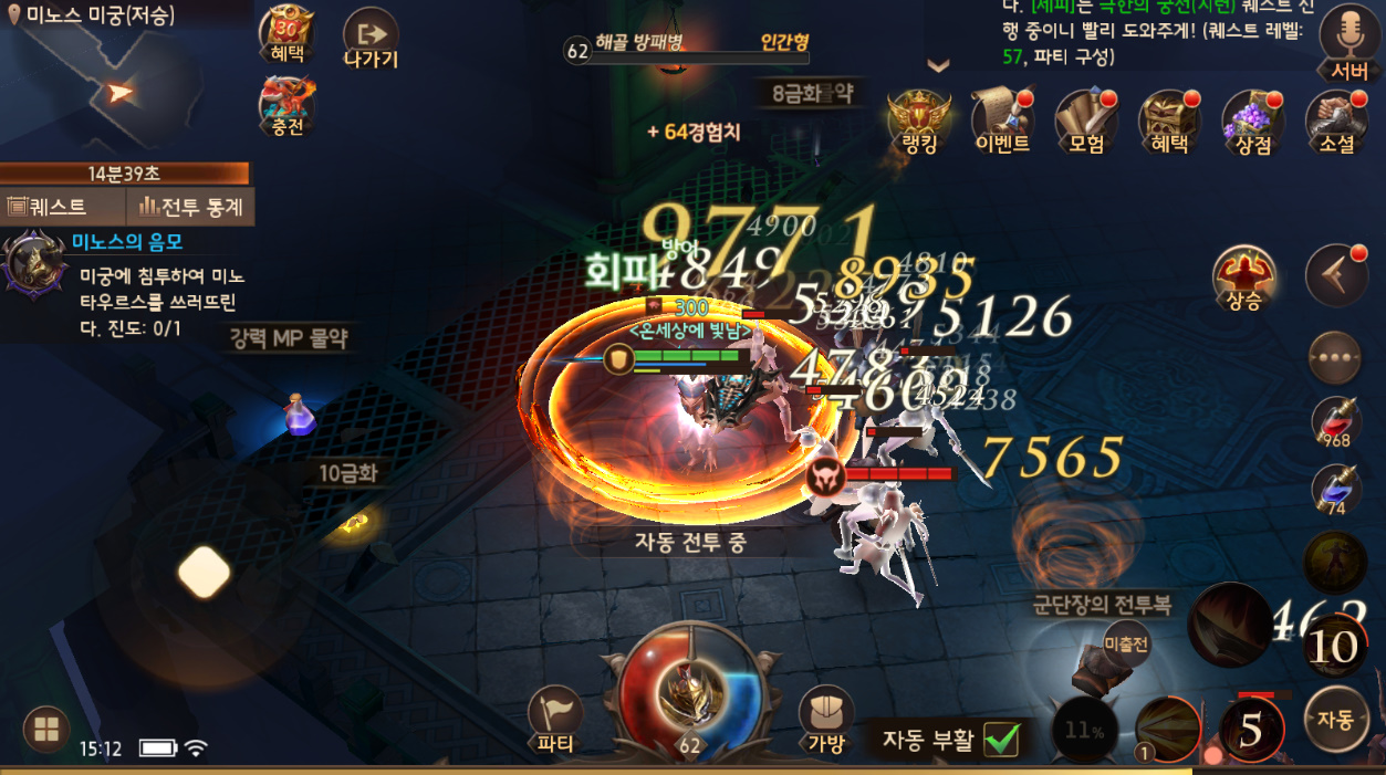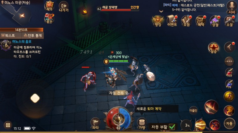 약간 어려운 던전 같은 경우에는 파티 맺어서 하면 금방 클리어 하기 때문에 과금 할게 없는..