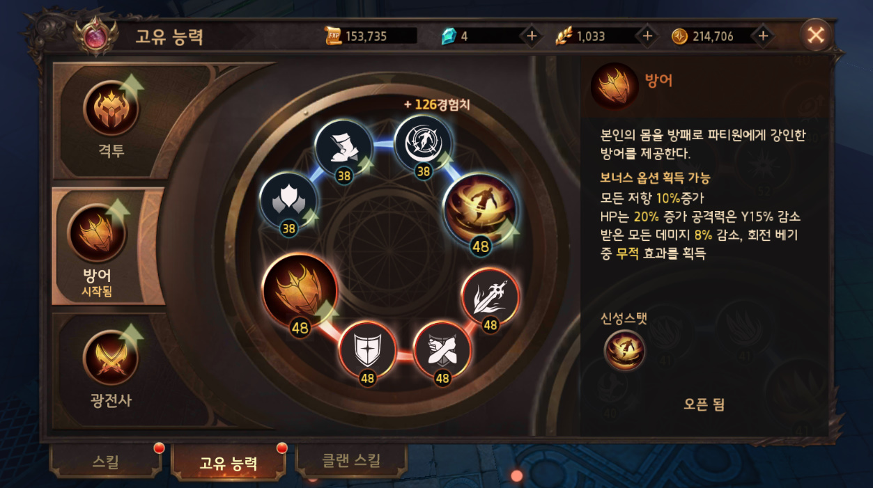 지금 방어로 스킬 찍어주고 있는데, 처음에 골드를 너무 많이 써서 아직 못찍고 있는 ㅠ