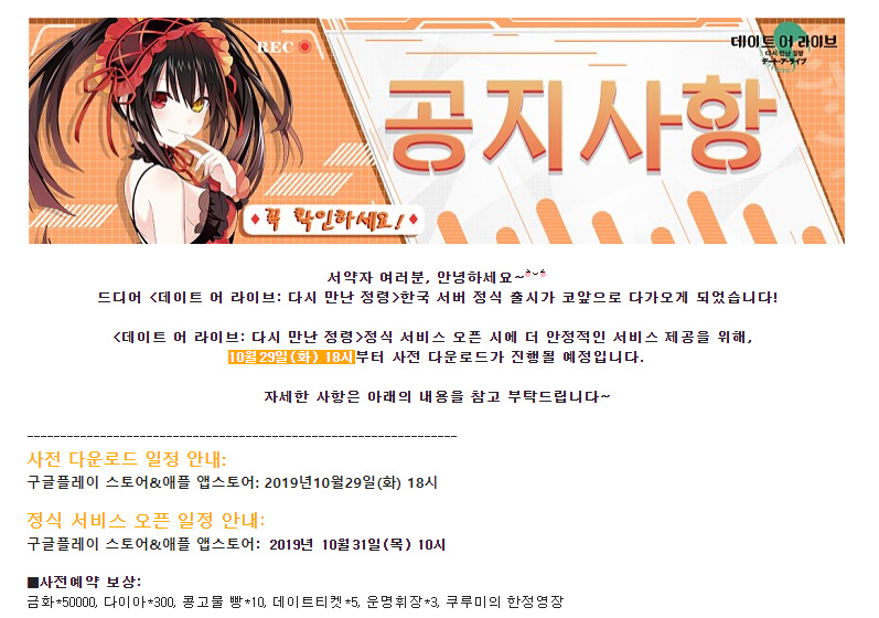 데어라 모바일 한국에 출시한다고 해서 사전예약하고 기다리고 있는데 오픈 날짜도 공개 됬네요