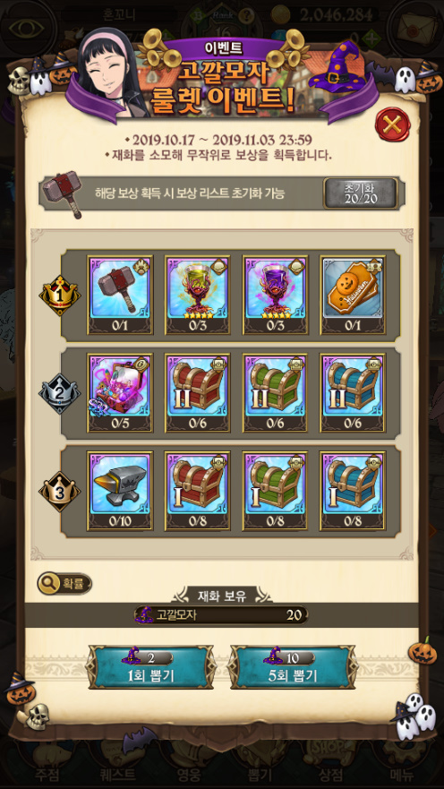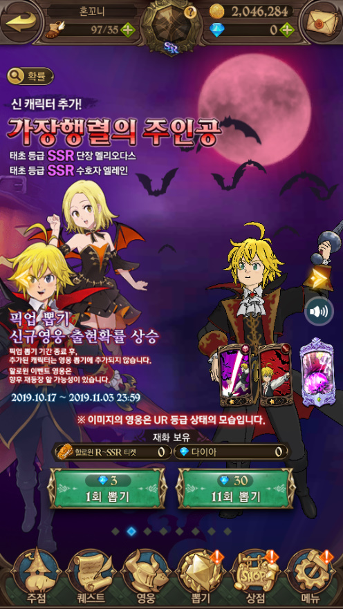 쵸풍신 아 할로윈 티켓 걸렸으면 좋겠는데 ㅠ 작성일시 : 2019. 10. 30 (13:00) 조회 : 1,821 / 댓글 : 0 이번에 칠대죄 룰렛 이벤트 하고 있는데1등 걸리면 할로윈 티켓도 주더라고요,,근데 1등 칸이 한개라서 될지는 모르겠지만 ㅋㅋ 그래두 고깔모자 있어서 돌려 봤습니당 ㅎㅎ ??? 아니 1등 잘 걸리는데요?? 뭐야 ㅋㅋㅋㅋㅋ근데 티켓은 안 걸렸나 안보이네요 ㅠㅠ엘레인 진짜 뽑고 싶은뎅;; 1추천 글쓰기스크랩 신고