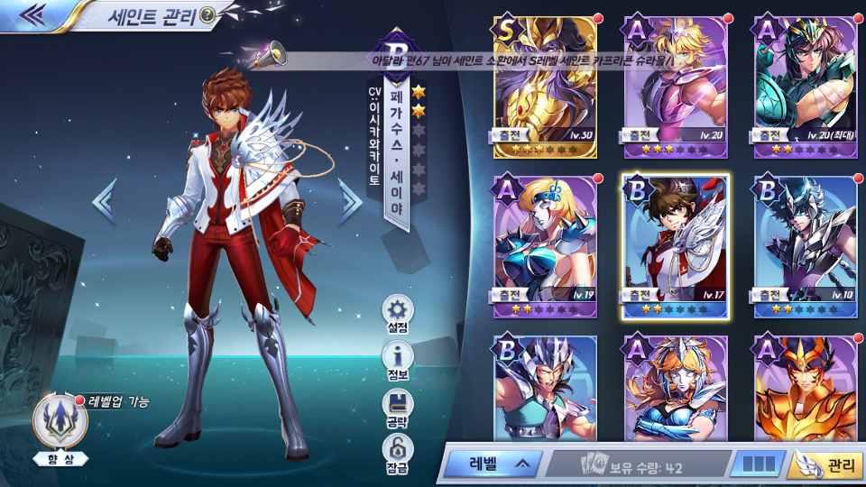 쵸풍신 세인트세이야:각성 꿀팁 작성일시 : 2019. 10. 30 (16:14) 조회 : 1,817 / 댓글 : 0 일단 세인트세이야:각성 여기서는 등급이 있지만성능이 좋은 캐릭터가 엄청나게 많기 때문에 참고하시면 좋을 거 같네요 개인적으로 처음 주는 세이야 이 캐릭터가 생각 보다 겁나 좋거든요단일 공격 면에서 엄청나게 높은 데미지 가지고 있고패시브 스킬은 강력한 추가 버프 효과까지 있어서 모르신다면 이놈부터 일단 키우세영 2추천 글쓰기스크랩 신고