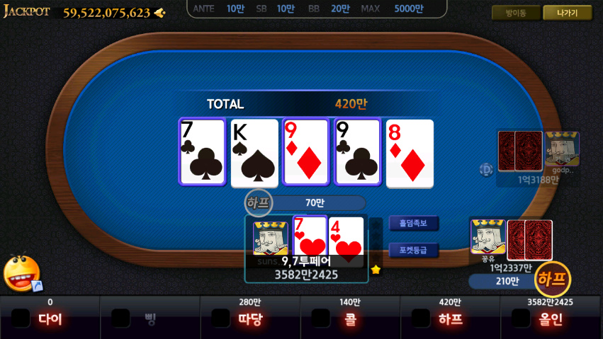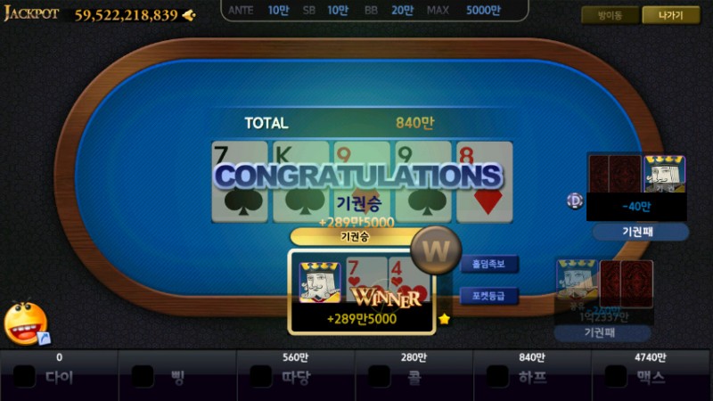 카드게임들 종목도 많고 제가 즐겨하는 홀덤 이 있어 맘에 쏙 들었습니다.