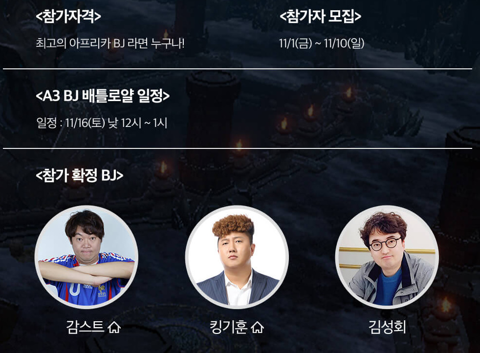 정소현 대박 ㅋㅋㅋA3 이번 참가확정 BJ들 ㅋㅋ 작성일시 : 2019. 11. 04 (17:54) 조회 : 1,278 / 댓글 : 1 이번 지스타는 되게 볼게 많을 것 같네여 ㅋㅋ특히 A3... 이번에 진짜 대박인게 BJ 배틀로얄을 진행한다고하는데참가 확정된 BJ들의 상태가 ㄷㄷ합니다 ㅋㅋㅋ감스트에.. 킹기훈에 ㅋㅋㅋ죄다 이름 말하면 알것 같은 BJ들 ㅋㅋ MMORPG기반 배틀로얄이라고하니신선해서 기대되네염 ㅋㅋ 3추천 글쓰기스크랩 신고