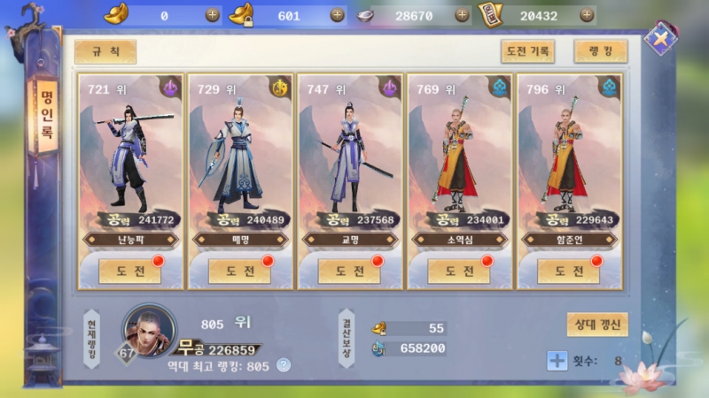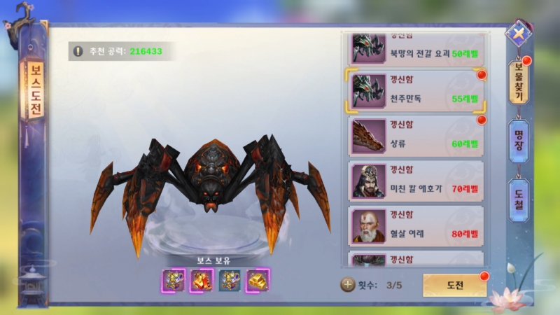 삘릴릴리 컨텐츠가 너무 많아서 하루가 바쁘네요ㅋㅋㅋ 작성일시 : 2019. 11. 11 (13:50) 조회 : 2,126 / 댓글 : 1 요즘에 무협에 재미들려서 일검강호라는 모바일 게임을 하고 있는데컨텐츠가 많아서 계속 보게 되더라구요ㅋㅋ그중에 저는 결투장이랑 비경 보물찾기가 제일 괜찮았는데결투장은 랭킹을 올리면서 원보도 벌 수 있어요ㅋㅋ 비경 보물찾기는 일종의 보스 던전 같은 곳인데경험치도 꽤 많이주고 돌때마다 1~2개씩은지금 장착하고 있는 아이템이 떠서 전투력 올리기도좋더라구요ㅋㅋ 하루에 5번밖에 못돌지만 꾸준히 하는중! 3추천 글쓰기스크랩 신고
