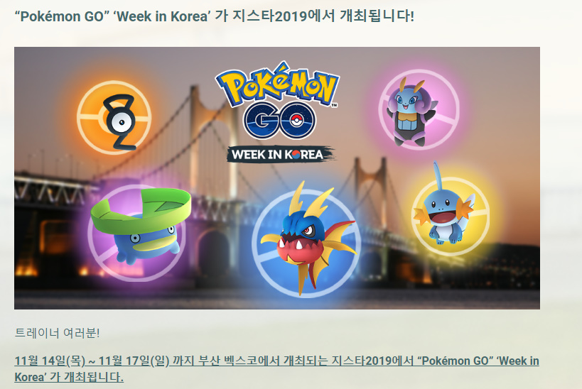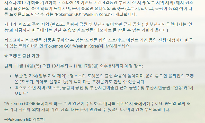 정소현 포켓몬고 지스타 이벤트 대박 ㅋㅋㅋ 작성일시 : 2019. 11. 11 (14:13) 조회 : 1,856 / 댓글 : 0 크으 14일부터 17일까지부산 전지역에서 평소보다 포켓몬 출현 확률이 높아지고 무엇보다 물 타입 포켓몬 색이 다른포켓몬을 만나볼 수 있다네여 ㅋㅋㅋ 꼬부기 딱기다려라 ... 2추천 글쓰기스크랩 신고