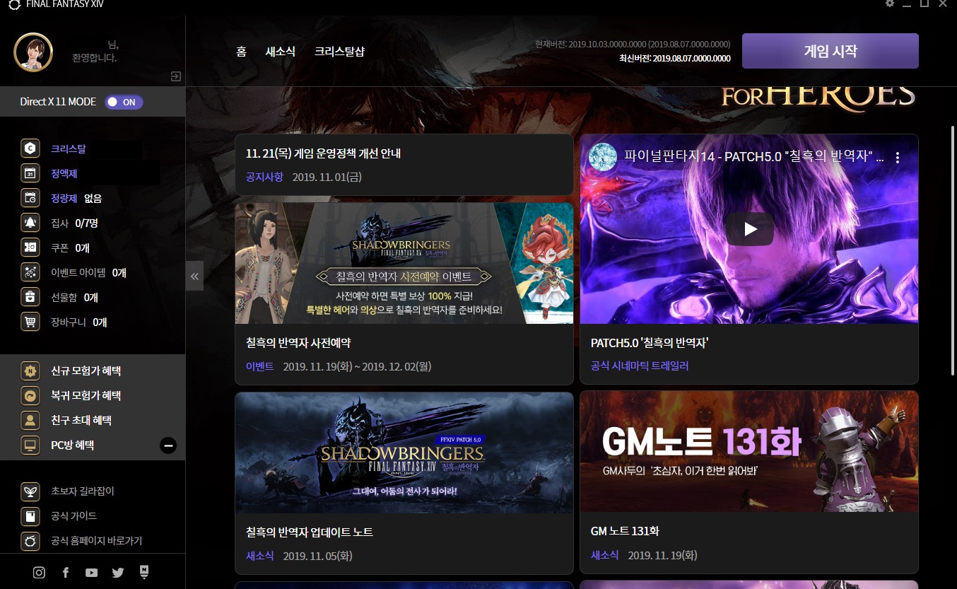 Adrian 파판14 런처 업뎃했습니다 ㅋㅋ 작성일시 : 2019. 11. 20 (18:06) 조회 : 3,285 / 댓글 : 0 칠흑의 반역자 확장팩 적용 전에 국내에 새로운 런처가 적용되었습니다 ㅋㅋㅋ기존의 런처에 비해 좀 더 유저 편의성이 잘 되어있어서꽤나 마음에 들더라구요ㅋㅋ 칠흑의 사전예약 페이지도 드디어 오픈되었습니다 ㅋㅋㅋ10만 달성으로 받을 수 있는 꼬친 주작이 넘나 커엽더군요과연 예약자 수 10만 달성이 잘 되려나 모르겠지만...저도 요새 친구들에게 열심히 영업중입니다 ㅋㅋㅋ 2추천 글쓰기스크랩 신고