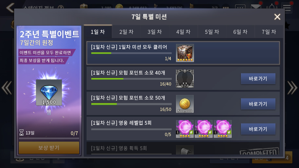 그 중에서 2주년 특별 이벤트 이거는 무조건 해야할 듯 하네요