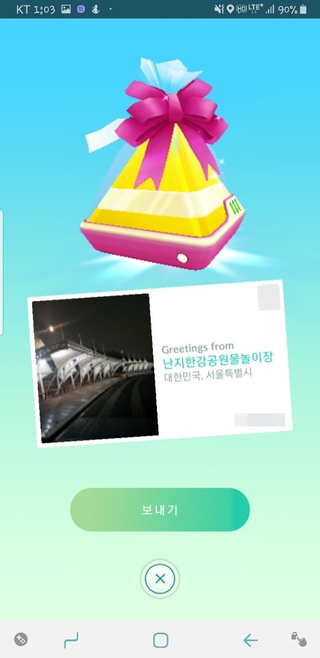 그리고 전 지난번에 갔떤 난지 한강공원 포켓스탑을 보내준 ㅎㅎ