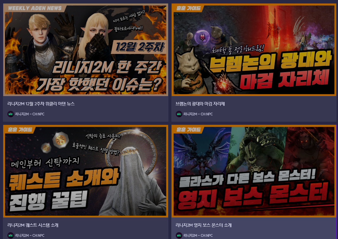 무엇보다 미디어 게시판에 있는 영상이 게임 시스템 부분이나