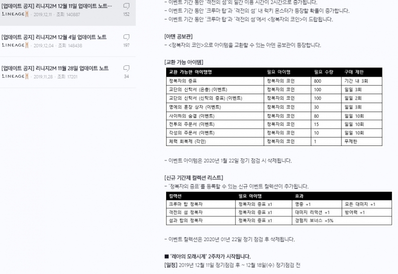 더군다나 린2m 업데이트 노트를 공식 홈페이지에서 아닌