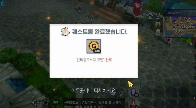 만두만두 달빛조각사 크리스마스 이벤트... 작성일시 : 2019. 12. 23 (15:26) 조회 : 1,585 / 댓글 : 1 내일이면 크리스마스 이브!그리고 이틀뒤면 드디어 크리스마스인데요.달빛조각사에서도 이번에 업데이트를 하면서 크리스마스이벤트 2탄을 시작했더라고요. 순록뿔 모자를 획득할 수 있는 이벤트인데마을에 위치한 산타클로스에게 퀘스트를 받으면 시작!처음에는 검은 코 순록들을 50마리 잡는건데여우평원이나 남부 평원에서 쉽게 찾을수 있어요.그다음에 빨간코 순록을 찾는건데여우평원 저기 5시방향 황무지 저는 저기에서 찾았어요. 2추천 글쓰기스크랩 신고