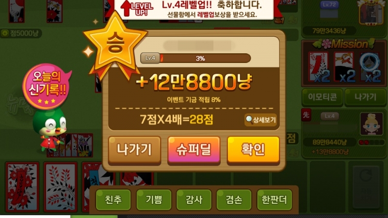 베래스 첫 판부터 아주 그냥~ 작성일시 : 2019. 12. 30 (15:17) 조회 : 2,263 / 댓글 : 1 아 요즘 왜이런지 모르겠는데 맞고가 너무 재밌어요..나이가 들었나 ㅋㅋㅋㅋ아무튼 피망뉴맞고 받아서 심심할 때 간간히 했었는데아 이게 하다 보면 시간 가는 줄 모르고 해서 문제네요;;뭔가 연말이라 엄청 느슨해져서 일하기 싫고 할 때 가끔 하는데피망뉴맞고 덕분에 야근을 밥 먹듯 하네요 ㅎㅎ화장실 가서 하면 꾸르잼.. 근데 이겨야 재밌다는 거.. 3추천 글쓰기스크랩 신고