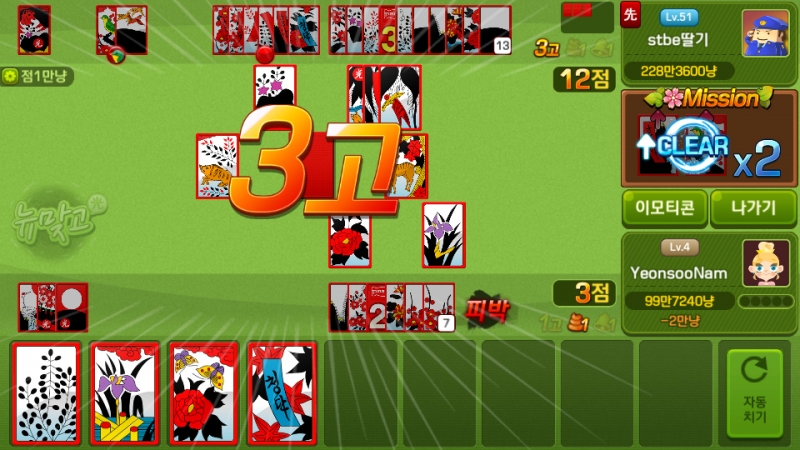쵸풍신 맞고 하면서 제일 무서운 순간 작성일시 : 2020. 01. 10 (15:36) 조회 : 1,759 / 댓글 : 2 상대방이 3고까지 가고 나는 점수를 계속 못 내고 있을 때 가장 무서운..요즘 피망뉴맞고 다운 받아서 간간히 하는데와 오늘은 뒷패가 왤케 안붙는지 아주 그냥 첫판 한번에 끝나버린 거 같습니다 진심..나는 점수를 못 내는데 3고 4고 까지 가버리는 바람에한방에 그냥 훅 가버렸습니다 ㅋㅋㅋㅋ와 근데 진짜 안되는 판이 확실히 잇기는 한가 봅니다 ㅠㅠㅠㅠ 3추천 글쓰기스크랩 신고
