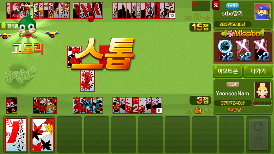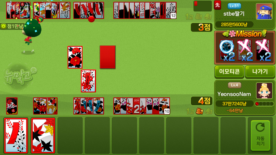쵸풍신 오늘의 맞고는? 작성일시 : 2020. 01. 13 (16:02) 조회 : 1,784 / 댓글 : 1 크.. 완전 그냥 당해버렸네요 오늘은... 점심시간에 시간 남아서 했다가 ㅋㅋ피망뉴맞고 다운 받아 놓고 뭔가 핸드폰에서 유일하게 안지우는 게임 중 하나..뭔가 심심할 때 하면 진짜 재밌더라고요 ㅋㅋㅋ근데 이것도 뭐 이겨야 재미있는거긴 한데 와.. 오늘은 거의 뭐 파산까지 갔네요상대방이 너무 잘하는 것도 있었지만 뭔가 뒷패가 자꾸 안붙어서 오늘은 날이 아니구나 싶어서 껐네요 ㅠㅠㅠ... 아 내돈 3추천 글쓰기스크랩 신고