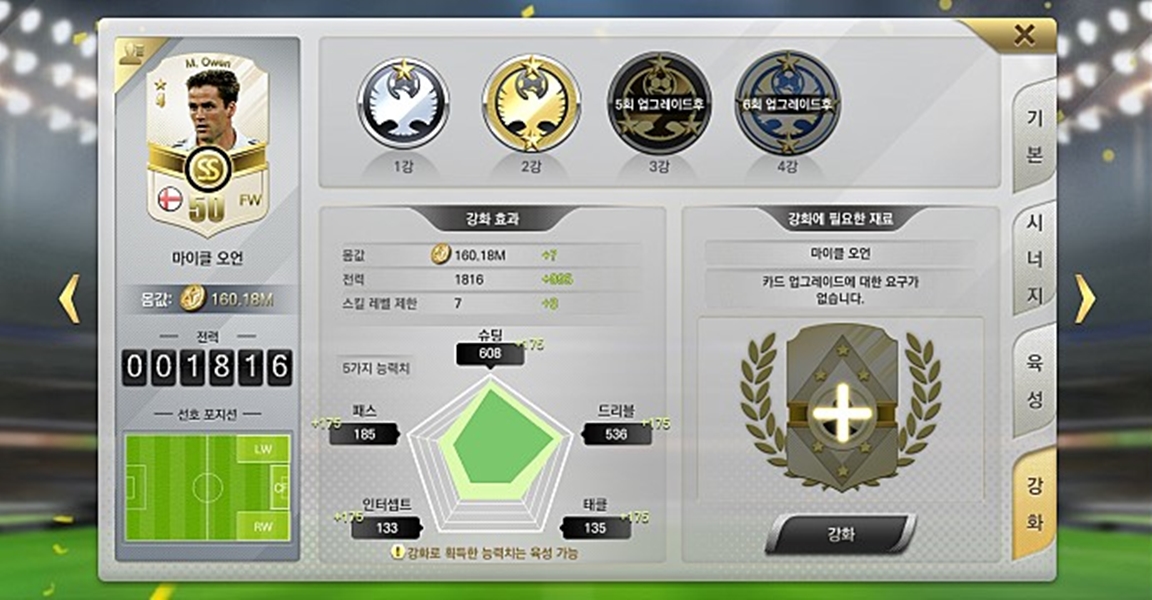 스킬이 실제 선수들에게 어울릴만한 스킬들이라 더 키우는 맛이 있는 게임이네요..ㅋㅋ