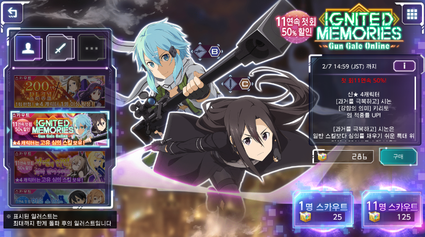 도붸르만 소아온 앨라스틸에 시논이!!! 작성일시 : 2020. 01. 17 (17:26) 조회 : 2,455 / 댓글 : 2 오늘 오후 3시에 소아온 앨라스틸에 팬텀불릿 버전시논과 키리토의 픽업 이벤트가 열렸어요!캬 50프로 할인 된 나의 첫번째 11명스카웃 과연 어떻게 될까유...시논 제발 나와줘 ㅠㅠ창세신 아스나도 못 뽑았단 말이야 (다음 픽업을 기다리며) 3추천 글쓰기스크랩 신고