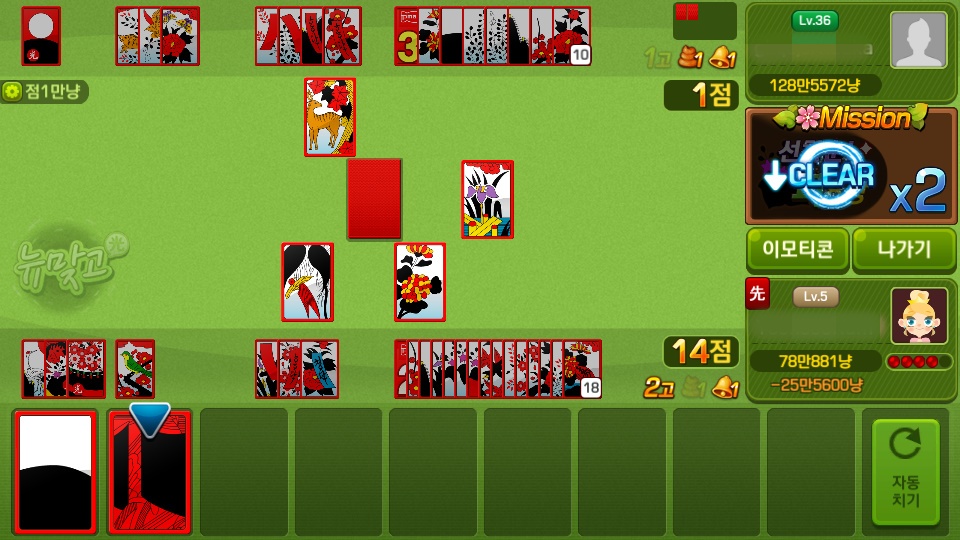 쵸풍신 게임은 역싀 맞고제~ 작성일시 : 2020. 02. 19 (15:50) 조회 : 1,684 / 댓글 : 1 아 이길때 는 한 없이 재밌는 게임이 맞고잖아요 ㅋㅋㅋㅋ저는 유일하게 안지우는 게임이 피망뉴맞고 이거랍니다 오늘은 패가 너무 좋아서 폭탄이랑 쌍피랑 아주 그냥상대방 난리 났었어요 ㅋㅋㅋ피박 면해볼라고 아주 난리통이었죠 ㅋㅋㅋㅋ그래도 역시 좋은 운과 패가 있다면 맞고에서는 최강,, 파산 시켰습니다 ㅋㅋ 3추천 글쓰기스크랩 신고