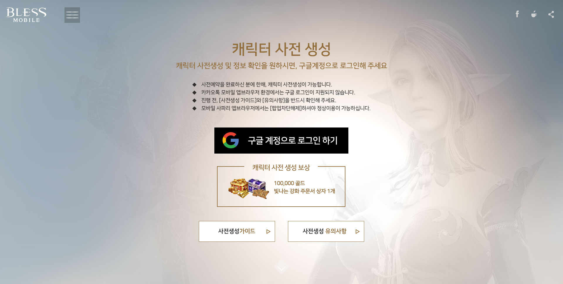 지금 블레스모바일 캐릭터 사전 생성 되거든요 ㅎㅎ