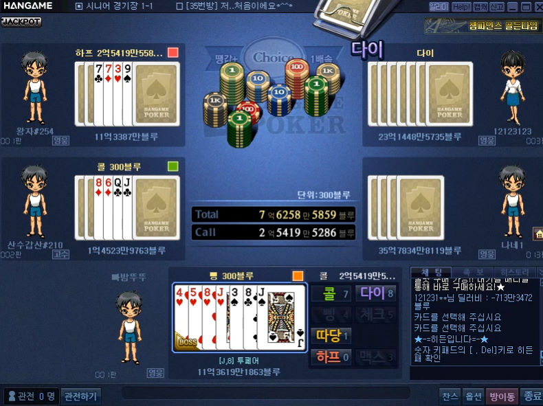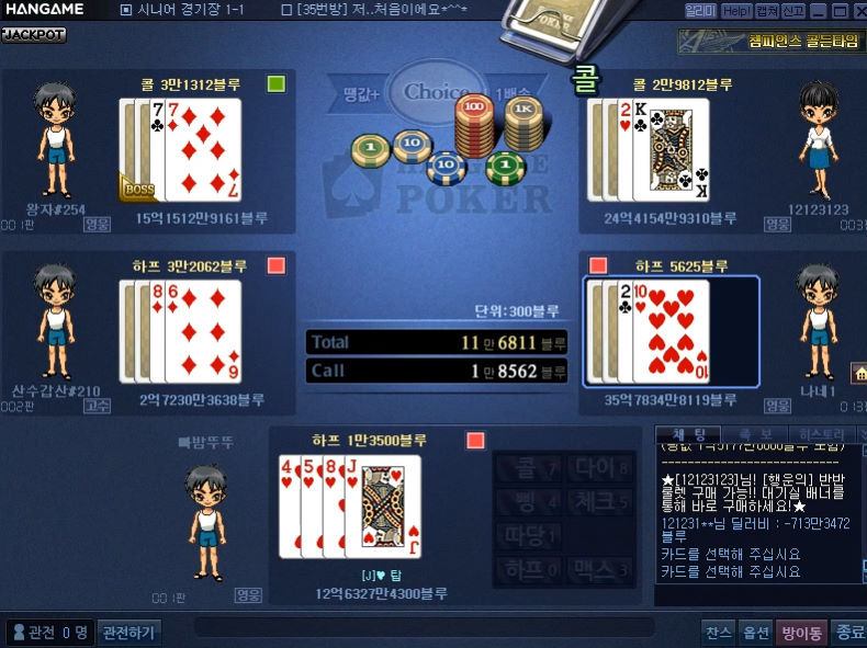 온나다나와 이게 무슨 일이고~? 작성일시 : 2020. 03. 18 (20:26) 조회 : 1,382 / 댓글 : 1 한게임포커 클래식 나오고 부터 요즘 집에서도 한게임포커 재미있게 즐기고있습니다. 계정이 모바일과 PC가 연동되기 때문이죠.암튼 시작부터 하트4장 가지고 시작해서 기분좋게 풀베팅 시도했습니다. 사랑이 부족했나요? 하트 한장이 안나오는 신기한 마법 발동...그래도 히든카드 받고 투페어 메이드 해서 콜 떄려봤는데 상대방 풀하우스 더군요...슬픈 한판이였습니다. 3추천 글쓰기스크랩 신고