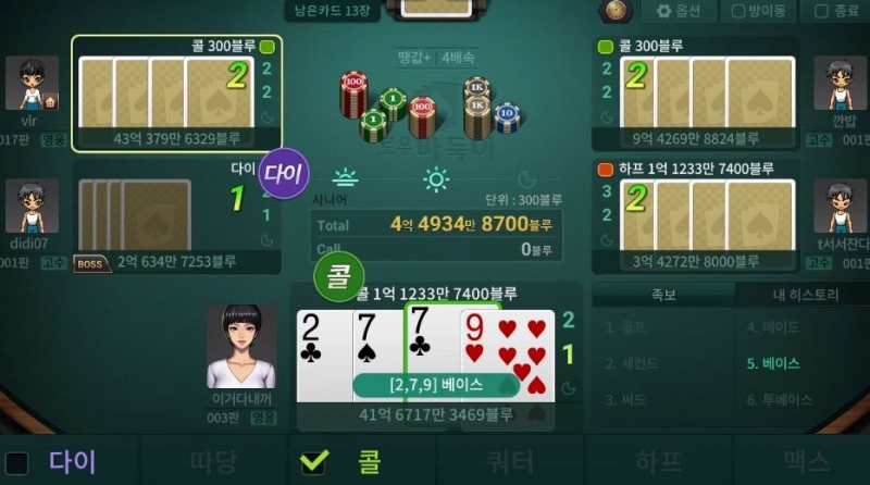 만두만두 로우바둑이는 은근히 다이를 많이 하는 듯.. 작성일시 : 2020. 03. 24 (15:14) 조회 : 2,726 / 댓글 : 0 PC한게임포커랑 연동이 되어서 한게임 포커 클래식 이걸로 하면PC로 게임을 하고 있는 사람들이랑 같이 할수 있는데요.저는 컴보다는 핸드폰으로 하는게 편해서 요즘에는한게임 포커 클래식으로 거의 하고 있는 것 같아요. 7포커랑 로우 바두이 중에서 요즘에는 로우바둑이만 하고 있는데매번 하면서 느낀 거지만로우바둑이는 다이를 참 빨리하는것 같더라고요.아마 배팅 금액이 빠르게 올라가서 그런것 같기도 한데...그래서 은근히 뻥카가 잘 먹히는 ㅋㅋ 3추천 글쓰기스크랩 신고