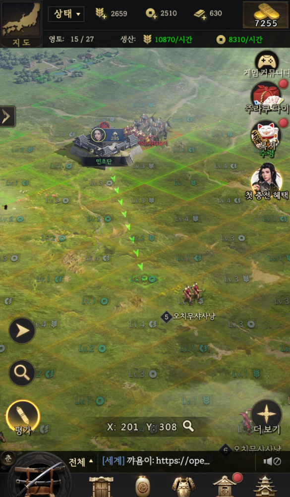 제가 성주가 되어서 관리하고 영토도 확장할 수 있고 대규모 pvp랑 pve 전투까지 즐길 수 있어요