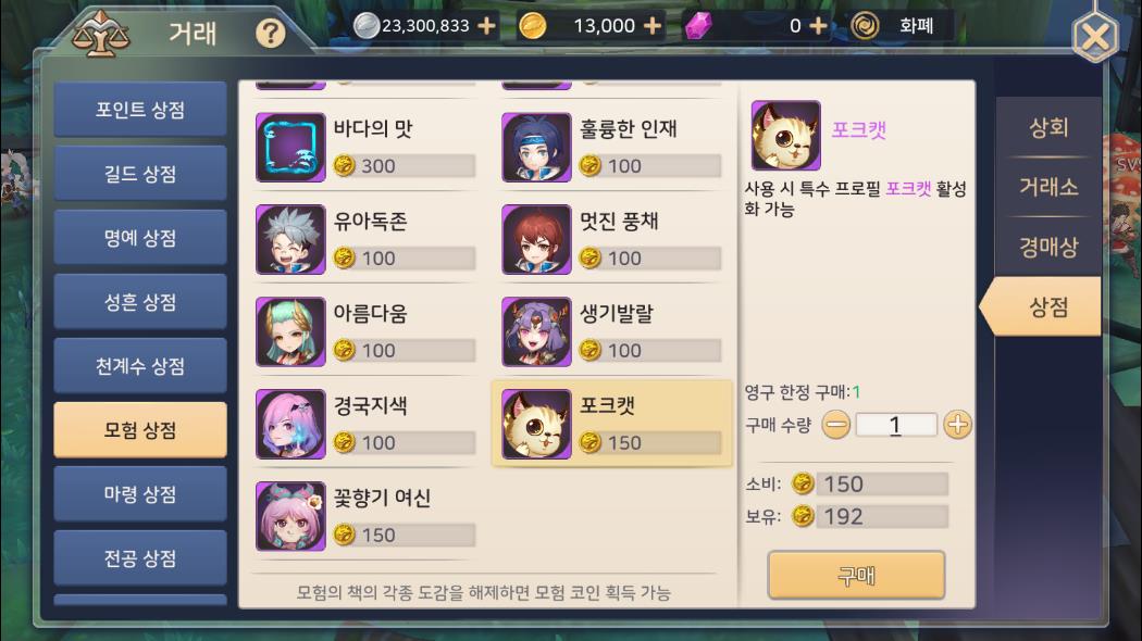 몬스터 도감 채우니깐 모험 코인 주던데 이걸로 영구 칭호랑 프레임, 프로필을 살 수 있더군요.