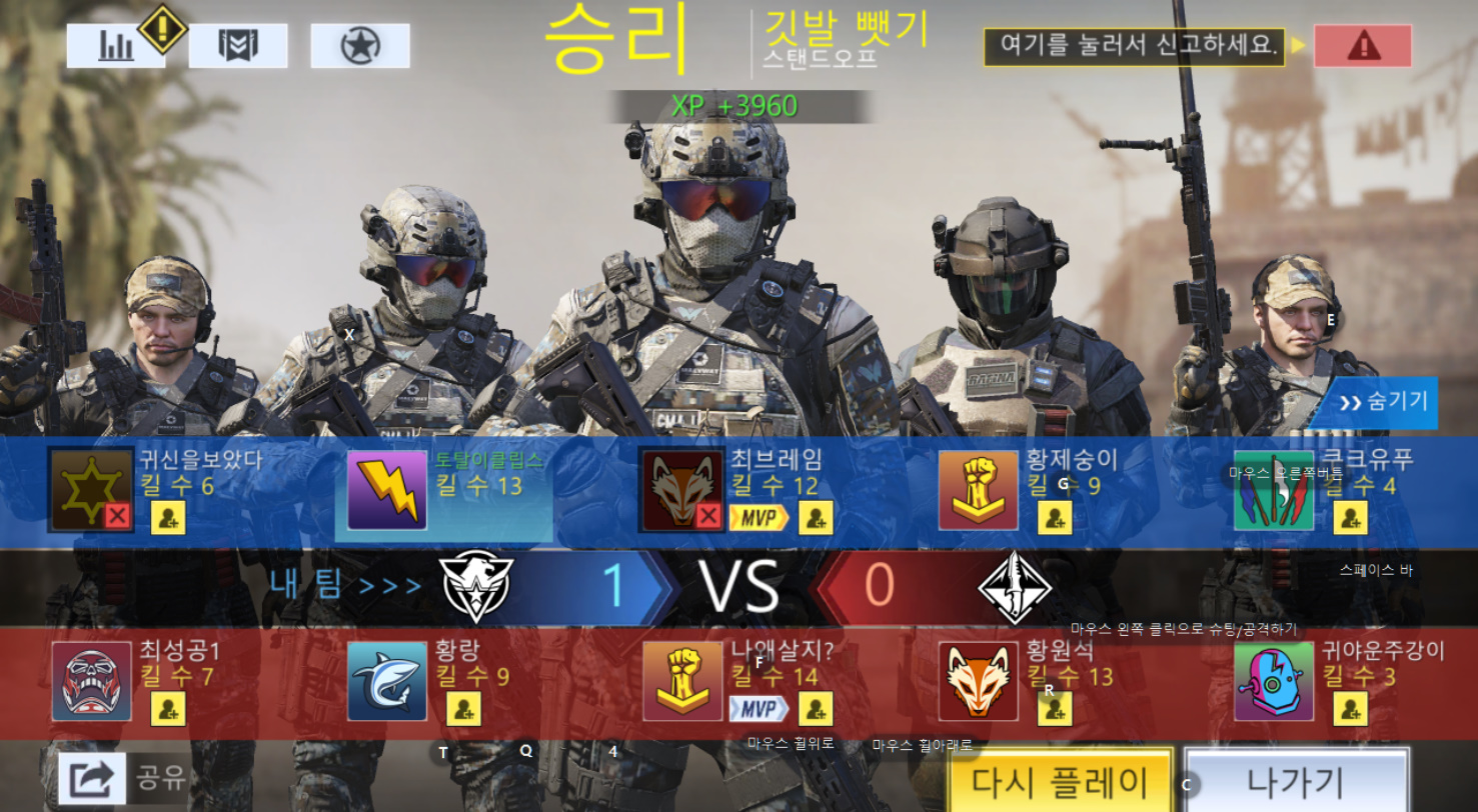 저는 멀티 플레이 좀 해보고 레벨업 돼서 깃발 뺏기 했어요