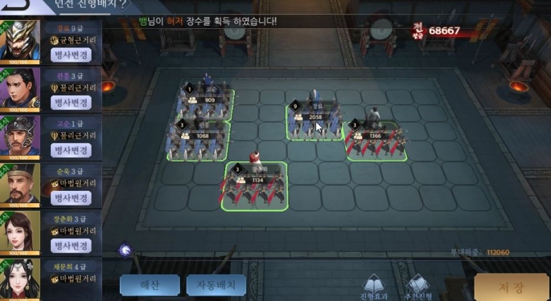 이렇게 장수들을 배치하고 전투를 시작하면....