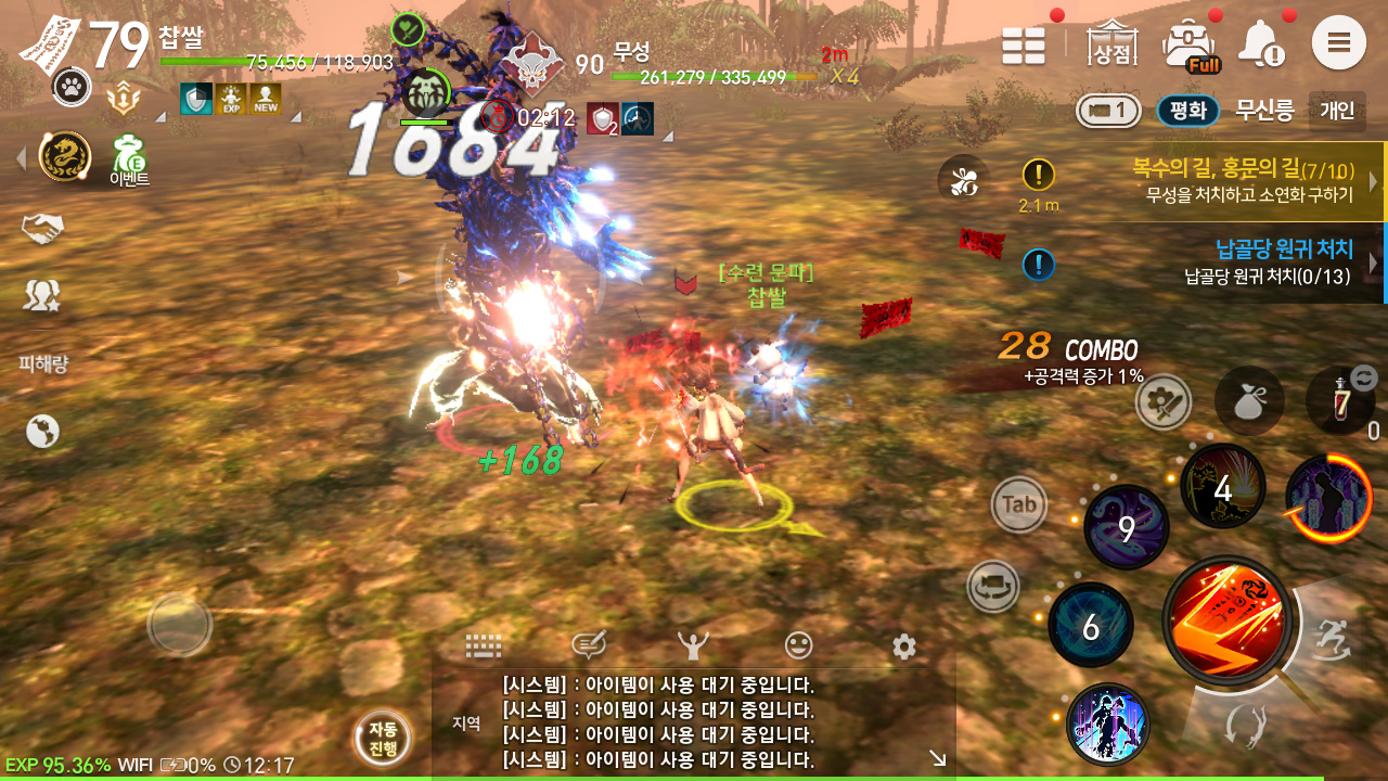 저 아까 30분만에 퀘스트 하나 돌고 그동안 쌓아둔 물약 미친듯이 먹였더니