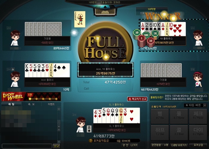Bonda 윈조이포털에서 뉴포커 초반에... 작성일시 : 2020. 06. 17 (15:41) 조회 : 1,955 / 댓글 : 1 윈조이포털에서 뉴포커진행하는데초반에 카드가 이렇게 나와버리면고민할 수 밖에 없잖아요플러쉬는 뭘로가고, 스트레이트를 택해야하나..결국 스트레이트와 다이아 플러쉬를 생각했는데... 조커가 나오면서 Q,3 풀하우스를 구성했더니와... Ace, 10 풀하우스라니...같은 풀하우스지만 비빌수가 없네요 ㅋㅋㅋ아쉽게도 이번 판은 졌지만 다음엔 조커가 나올땐 좀 더 신중해야겠어요 2추천 글쓰기스크랩 신고