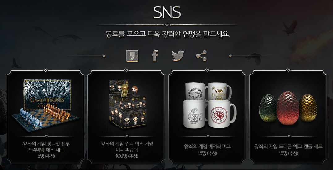 온나다나와 왕좌의게임 굿즈 다 가꼬 싶다... 작성일시 : 2020. 06. 18 (20:39) 조회 : 3,403 / 댓글 : 0 왕좌의게임M 사전예약 하면서 공식카페 눈팅 중인데 이벤트 경품들 겁나 수집욕구 자급하더라구요. SNS 공유 이벤트 굿즈들 과 페이스북 기대평 작성 이벤트 경품 다 굿즈들인데 희소성좀 있을 것 같더라구요.특히 저는 발라모굴리스 코인 너무 가꼬싶어요.아리아 스타크 스토리 다룰때가 제일 재미있었거든요. 2추천 글쓰기스크랩 신고