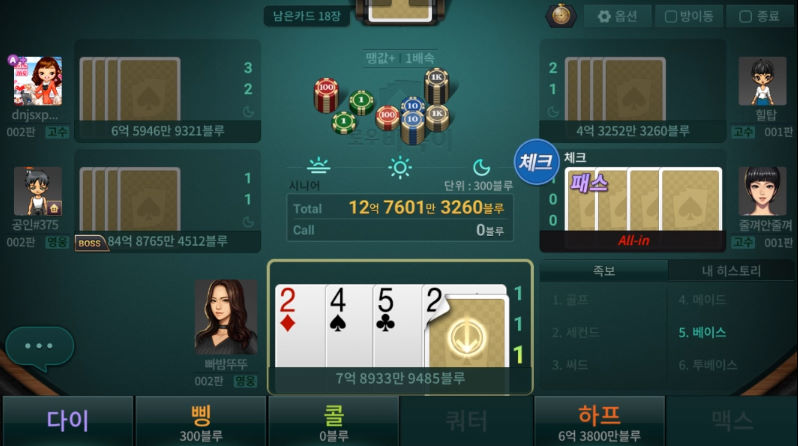 걸리병 한게임포커 클래식 로우바둑이 하면서 가장 쫄깃 할때 작성일시 : 2020. 06. 19 (19:53) 조회 : 1,885 / 댓글 : 1 저녁 베팅전 카드 베이스 상태에서 카드 쫄때 ㅇㅈ?사실 카드게임 이맛에 하는거 아닌가요?옵션에 카드 오픈 수동으로 설정하고 필요한 카드 유추할때 그 쫄깃함 말로 표현 안되죠. 비록 이번엔 베이스 마무리되었지만떠주기라도 하면 다음 베팅 부터 또 긴장 하는 ㅋㅋ요즘 가볍게 한게임포커 클래식 하면서 스트레스 풀고 있습니다. 2추천 글쓰기스크랩 신고