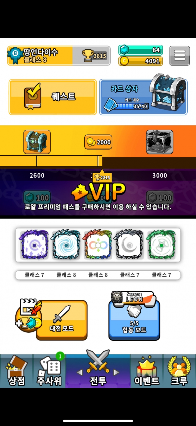치토스 랜덤 다이스 트로피보상 곧 ..! 작성일시 : 2020. 06. 25 (16:46) 조회 : 3,904 / 댓글 : 1 좀있으면 트로피 3천을 달성해 전설주사위 받는 상자를 받는데몇판만 이기면 되는군요 ㅎ 요새 달 주사위가 상향되서 태달+ 서폿 덱으로대전모드 꿀빨고 있습니다 조만간 3천달성할거 같아요 이건 저의 약간 못된(?) 방식이지만원래 게임중에 이렇게 코파는모션 가끔 날려줘야상대방의 멘탈이 흔들려서 가끔 항복하고 나가거든요가끔 이모티콘 멘탈흔들기로 빠른승리에 꽁승 개이득 ㅎ 1추천 글쓰기스크랩 신고