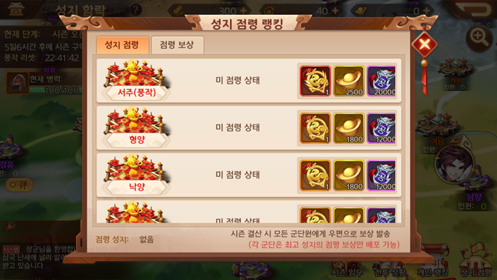 성지함락이라는 게 성지 주둔 시간에 따라 금화를 획득하게 되는데요