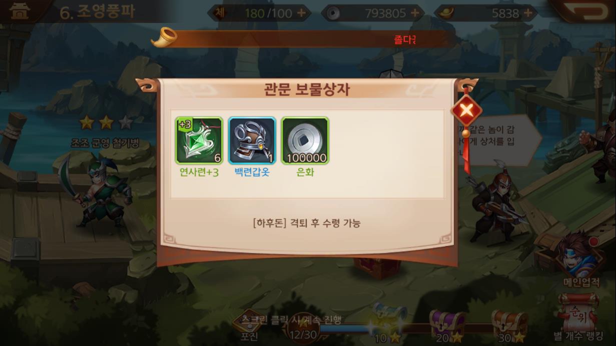 맵을 자세히 보면 가끔씩 보이는 관문 보물상자를 클릭해서