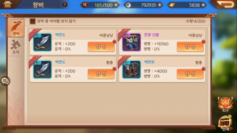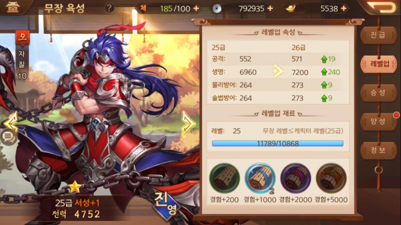 장수 레벨업,진급 아이템 등 여러 요소를 활용해서