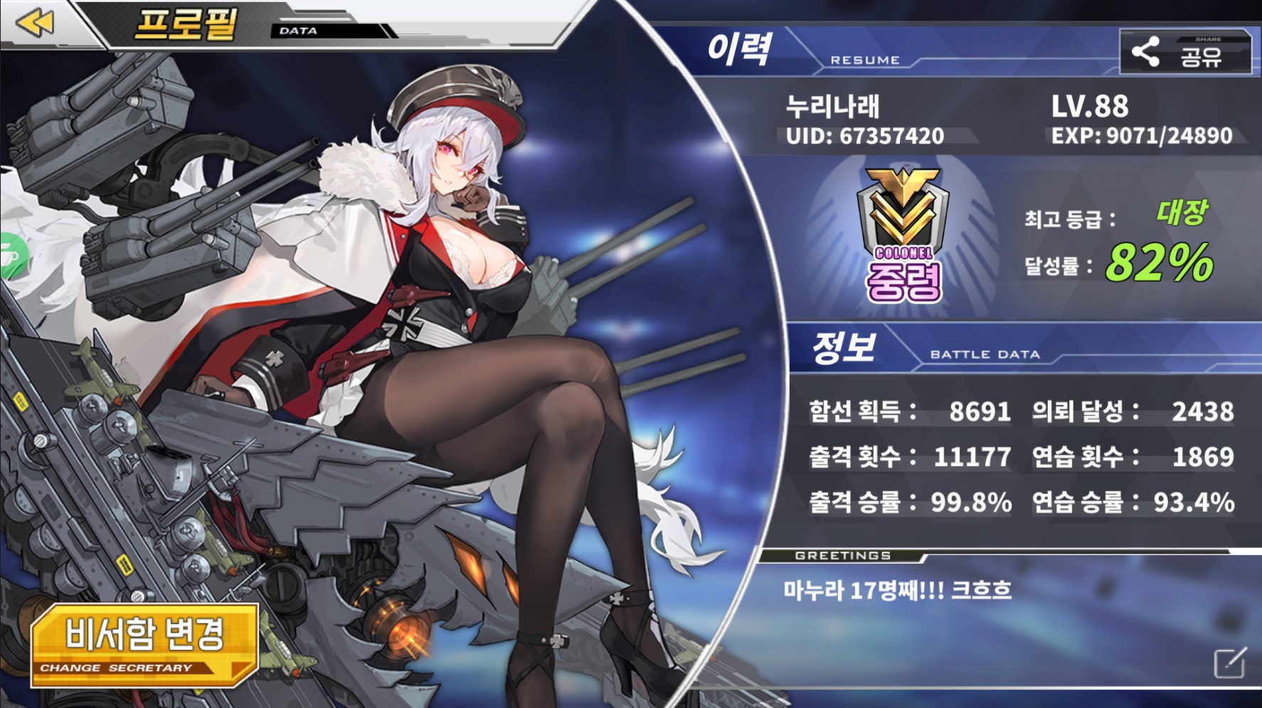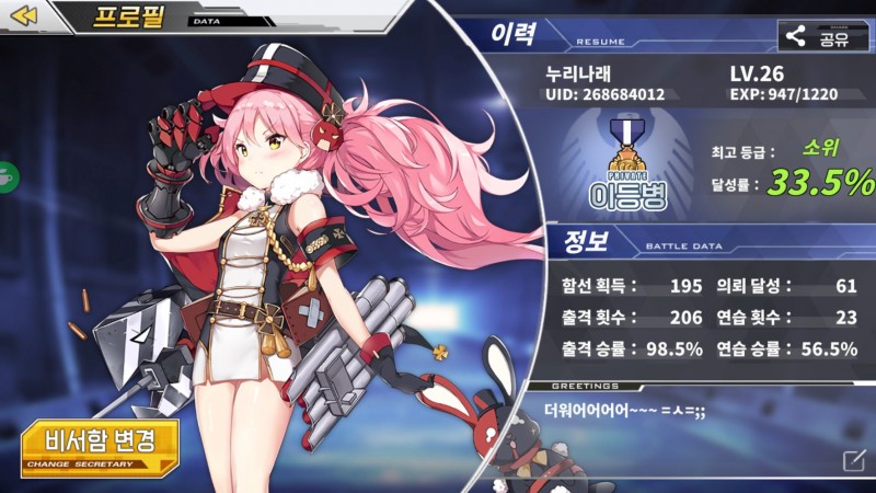 유희 [주의] 벽람) 공식카페 댓글 이벤트 소식! 작성일시 : 2018. 08. 04 (16:36) 조회 : 2,575 / 댓글 : 3 저의 (명량, 한산도, 노량, 옥계)서버 애들...ㅋ이렇게 비서함을 이벤트 캐릭(12함선 중 하나 선택하여)을 넣어서 스샷!!공식 카페에 회원가입 후 댓글로 올려줘냥~!!!좋은 선물이... ㄷㄷㄷ 출처(링크) : https://cafe.naver.com/azurlanekorea/217869 6추천 글쓰기스크랩 신고