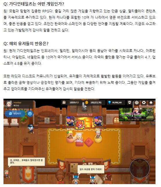 치토스 7/16일 오픈하는 가디언테일즈. 작성일시 : 2020. 07. 15 (17:02) 조회 : 2,160 / 댓글 : 1 이번에 카카오 게임즈에서 이미 해외에서 인기를 끌고있는 어드벤처 RPG 가디언테일즈를내일 국내에 런칭한다고 하는데 이미 해외서버 유저분들 평으로는게임 완성도도 상당히 높은편이며 옛 젤다의전설 같은 느낌이 많이 난다고 하더랴구요. 도트이미지로 레트로 감성을 불러일으키며 완성도 높은 컨텐츠로 무장한 가디언테일즈 많이 기대가 되는군요. 내일 오픈하면 당장 플레이 해봐야겠습니다. 1추천 글쓰기스크랩 신고